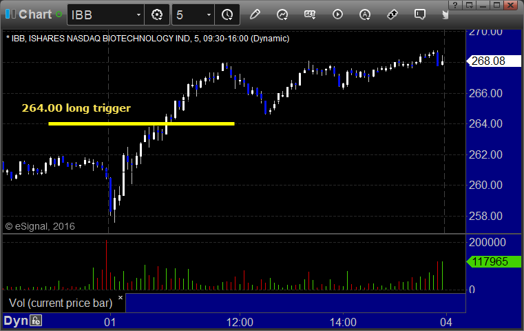 Rich's IBB triggered long (ETF, so no market support needed) and worked: