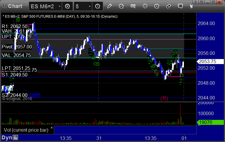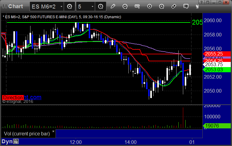 As usual, let's start by taking a look at the ES and NQ with our market directional lines, VWAP, and Comber on the 5-minute chart from today's session: