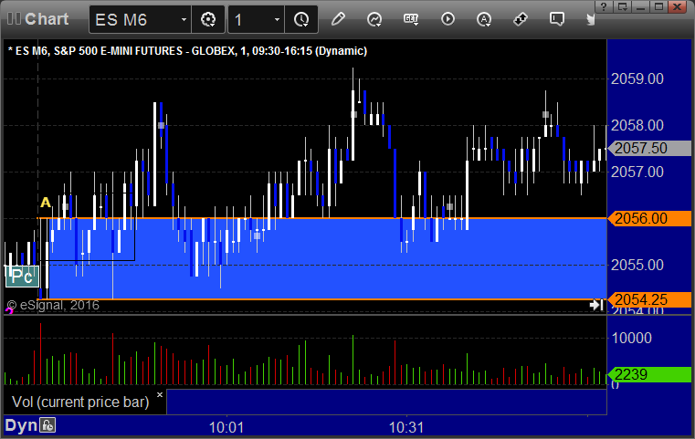 ES Opening Range Play triggered long at A, eventually went enough for a partial, second half stopped under the entry: