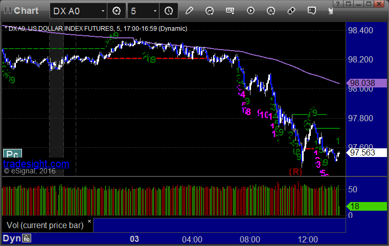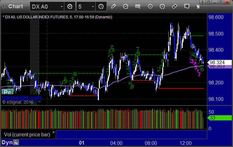 Here's a look at the US Dollar Index intraday with our market directional lines: