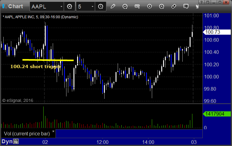 From the Messenger/Tradesight_st Twitter Feed, Rich's AAPL triggered short (with market support) and worked: