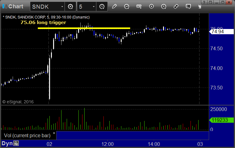 Mark's SNDK triggered long (without market support) and didn't work: