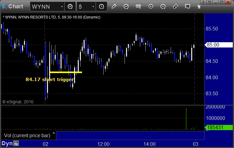 His WYNN triggered short (without market support) and worked: