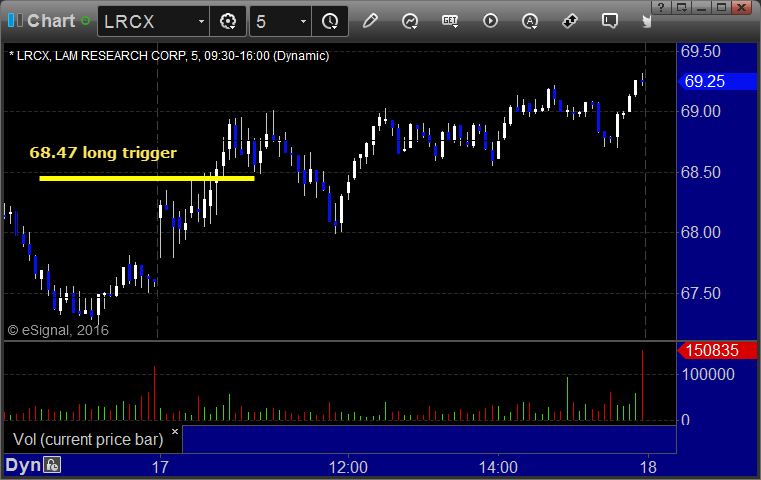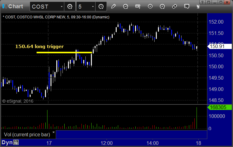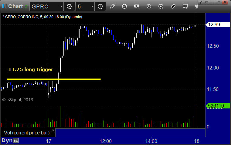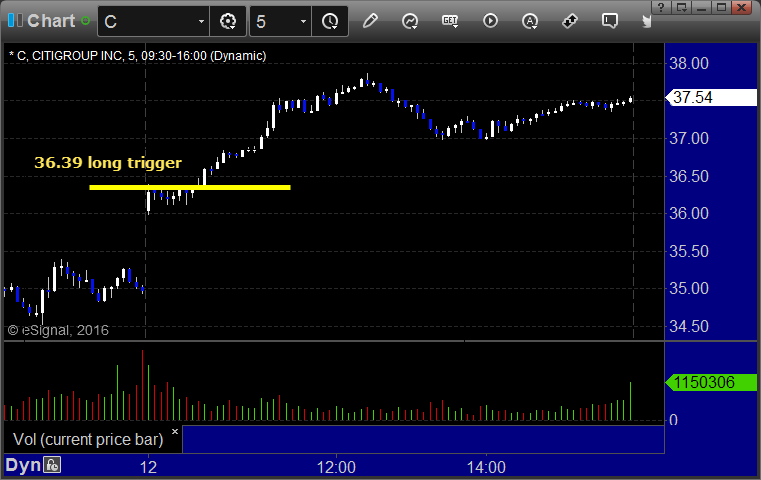 With each stock's recap, we will include a (with market support) or (without market support) tag, designating whether the trade triggered with or without market directional support at the time. Anything in the first five minutes will be considered WITHOUT market support because market direction cannot be determined that early. ETF calls do not require market support, and are thus either winners or losers.