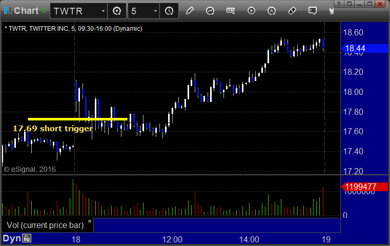 TWTR triggered short (with market support) and I eventually posted to close it where we opened it as it went too long: