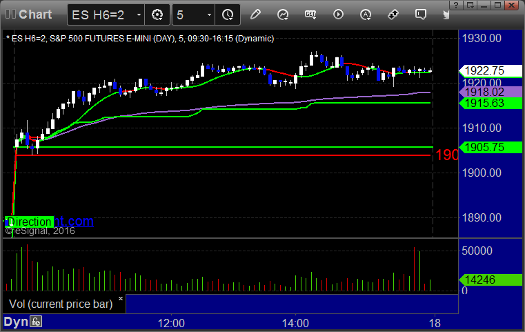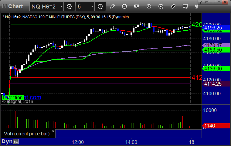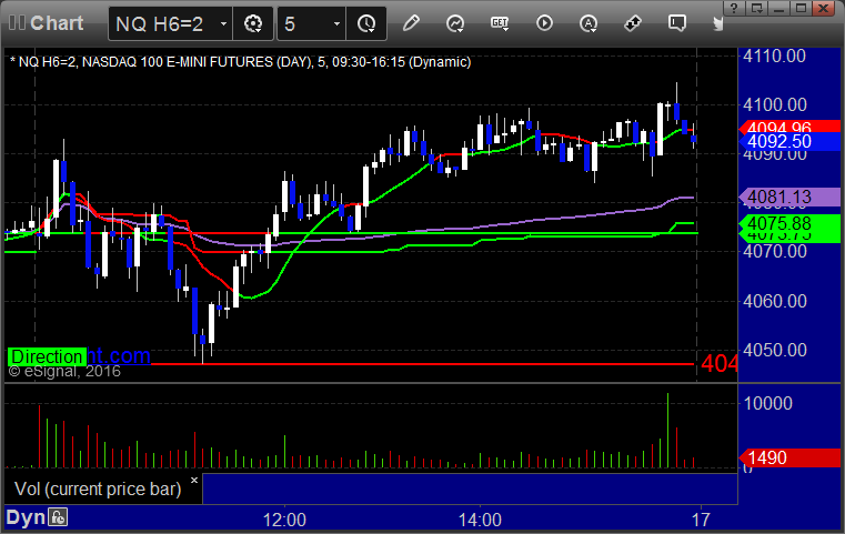 As usual, let's start by taking a look at the ES and NQ with our market directional lines, VWAP, and Comber on the 5-minute chart from today's session: