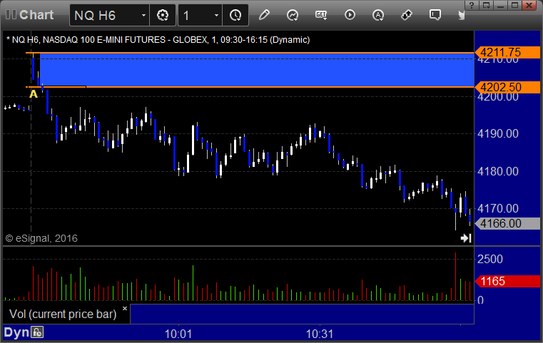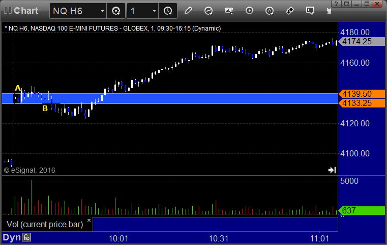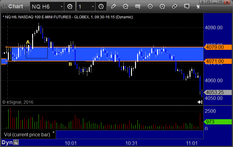 NQ Opening Range Play triggered long at A and worked, triggered short at B and worked: