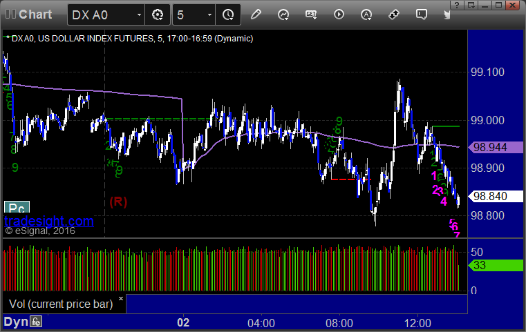 Here's a look at the US Dollar Index intraday with our market directional lines: