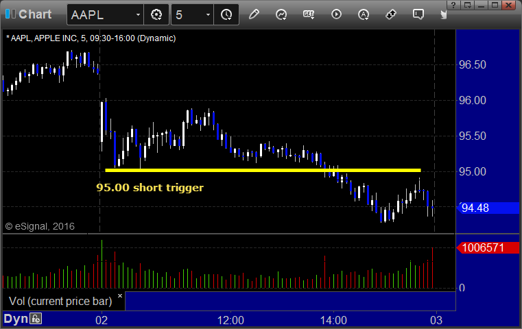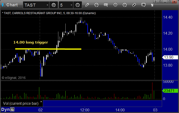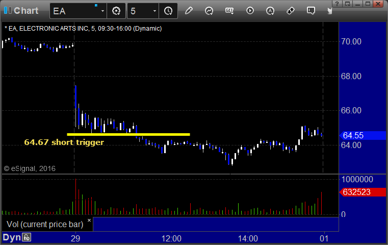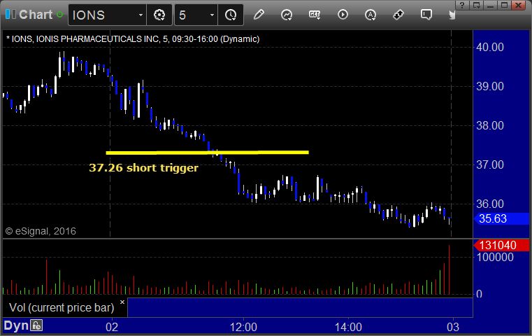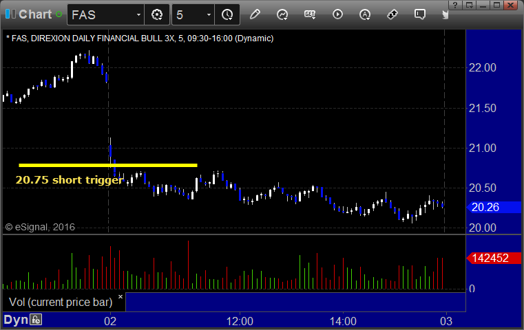 From the Messenger/Tradesight_st Twitter Feed, Rich's FAS triggered short (ETF, so no market support needed) and worked:
