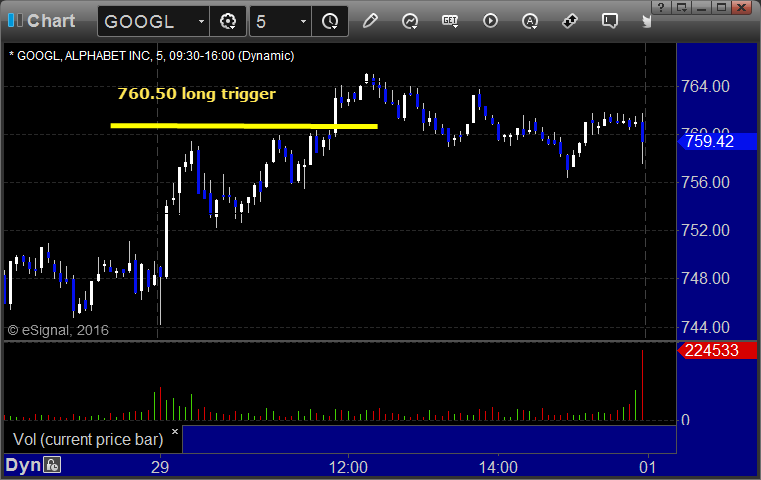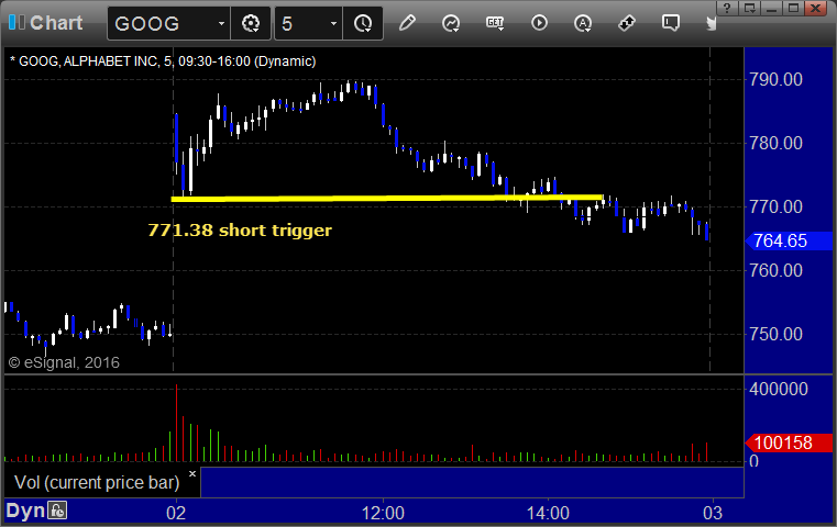 His GOOG triggered short (with market support) and worked enough for a partial: