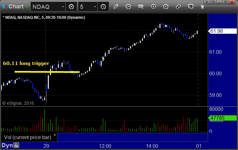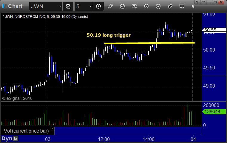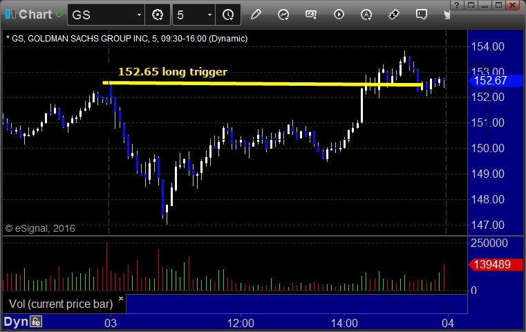With each stock's recap, we will include a (with market support) or (without market support) tag, designating whether the trade triggered with or without market directional support at the time. Anything in the first five minutes will be considered WITHOUT market support because market direction cannot be determined that early. ETF calls do not require market support, and are thus either winners or losers.