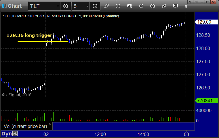 Mark's TLT triggered long (ETF, so no market support needed) and didn't go enough in either direction for hours to count either way (eventually worked but that's not a likely hold):
