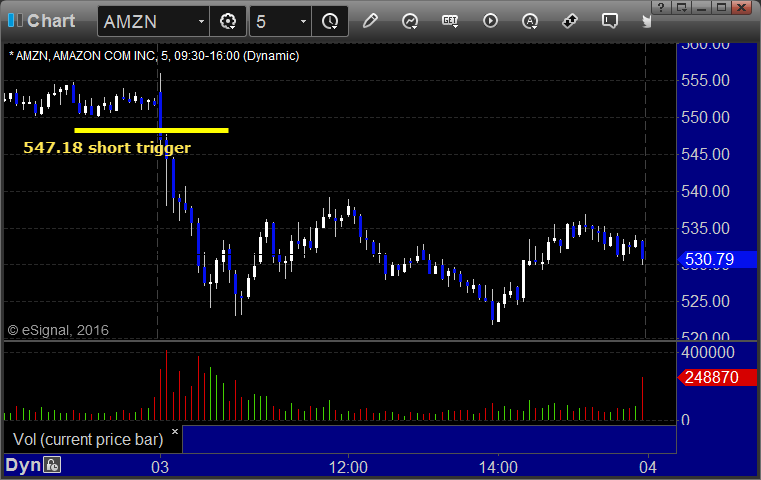 AMZN triggered short (without market support due to opening 5 minutes) and worked: