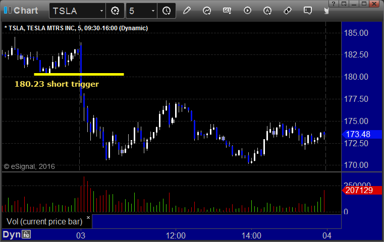 From the Messenger/Tradesight_st Twitter Feed, Rich's TSLA triggered short (without market support due to opening 5 minutes) and worked great: