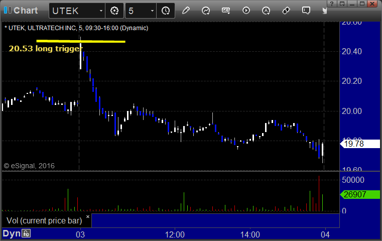 From the report, UTEK triggered long (without market support due to opening 5 minutes and didn't work):
