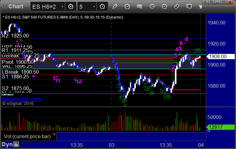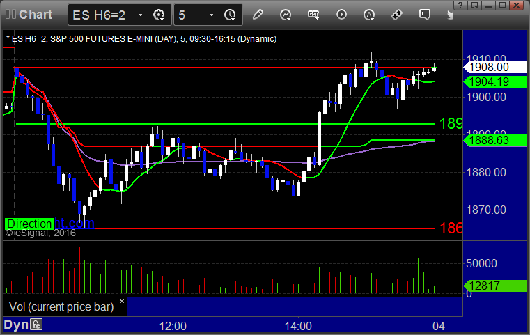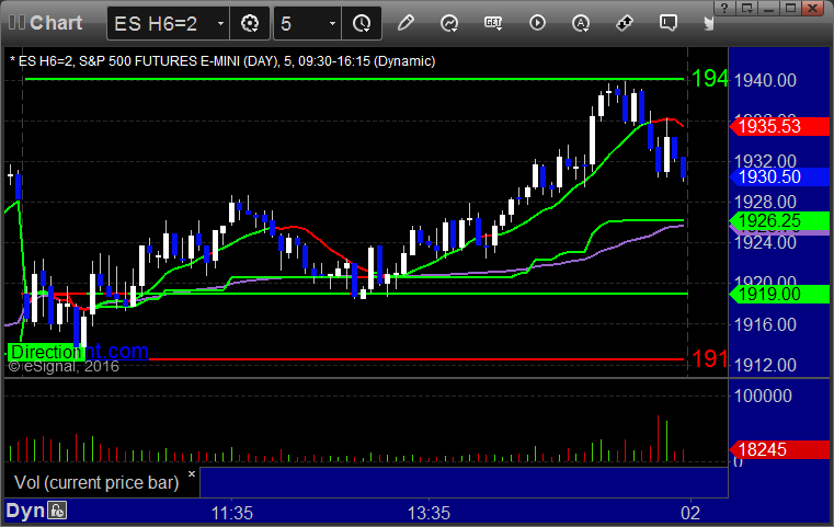 As usual, let's start by taking a look at the ES and NQ with our market directional lines, VWAP, and Comber on the 5-minute chart from today's session: