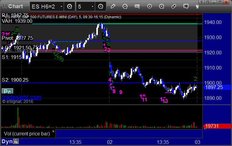 ES Opening Range Play triggered short at A and worked big, posted final exits in Twitter feed: