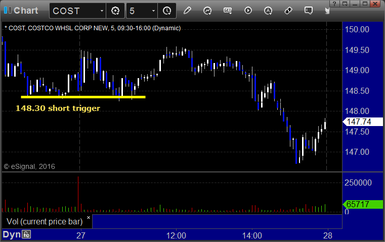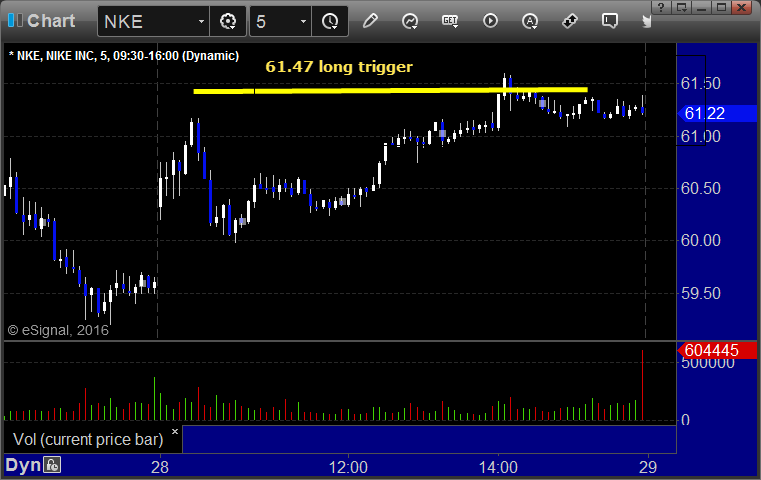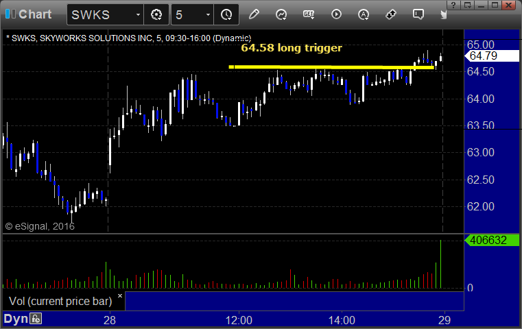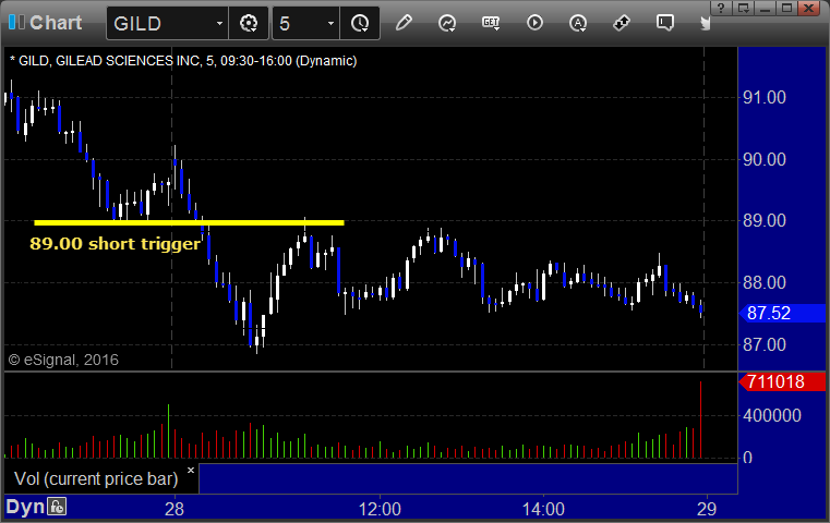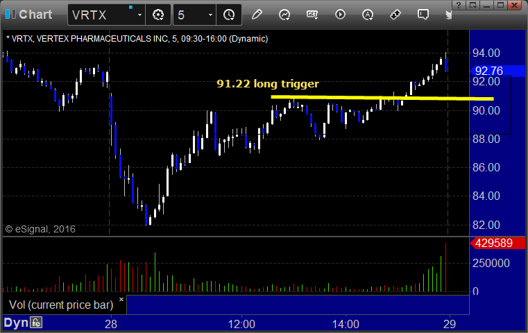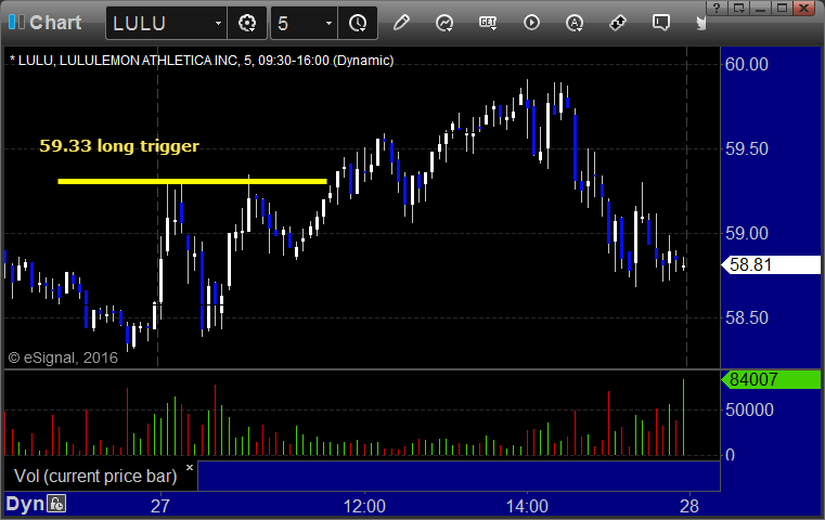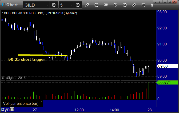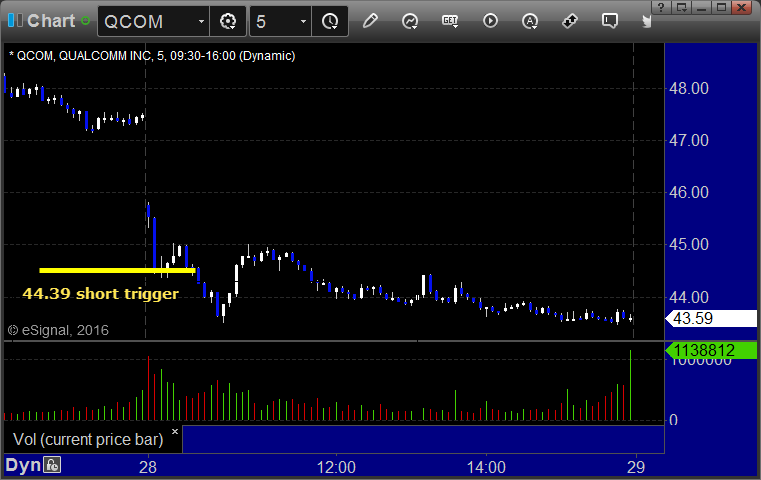 With each stock's recap, we will include a (with market support) or (without market support) tag, designating whether the trade triggered with or without market directional support at the time. Anything in the first five minutes will be considered WITHOUT market support because market direction cannot be determined that early. ETF calls do not require market support, and are thus either winners or losers.