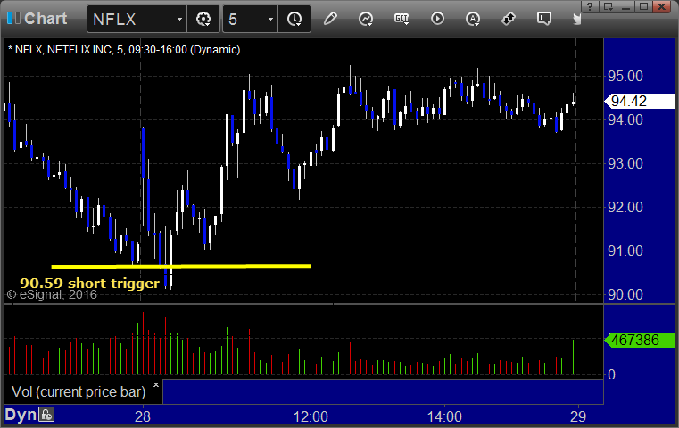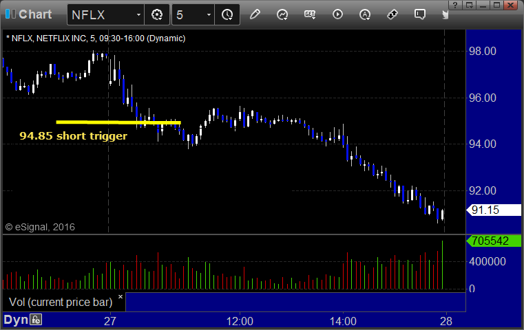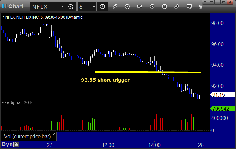 From the report, NFLX triggered short (with market support, totally clean trigger after the announcement and should have been taken heavily) and worked great: