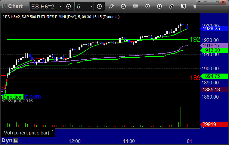 As usual, let's start by taking a look at the ES and NQ with our market directional lines, VWAP, and Comber on the 5-minute chart from today's session:
