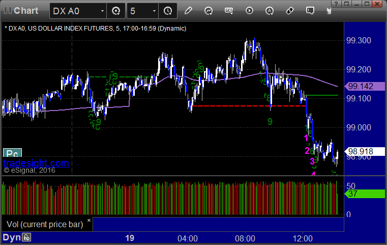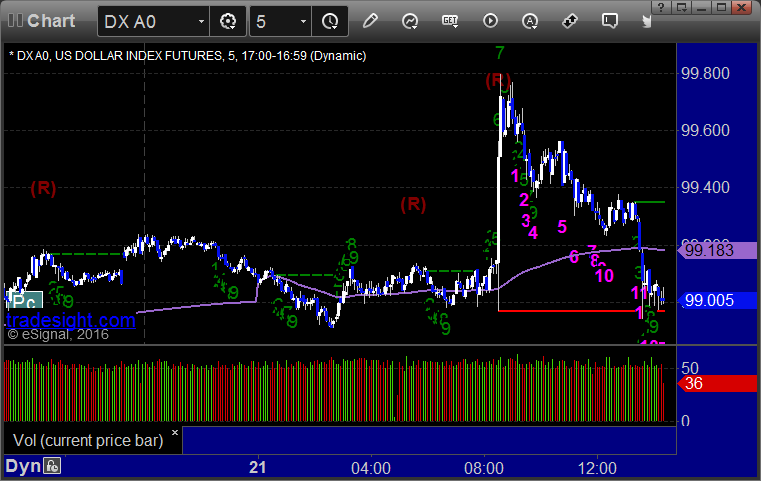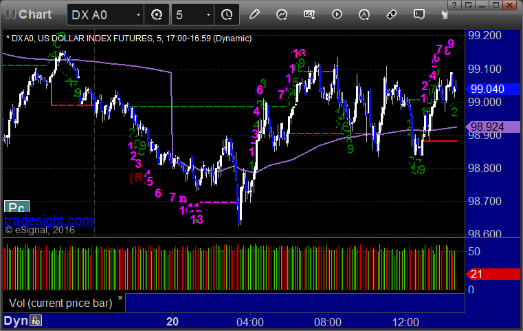 Here's a look at the US Dollar Index intraday with our market directional lines: