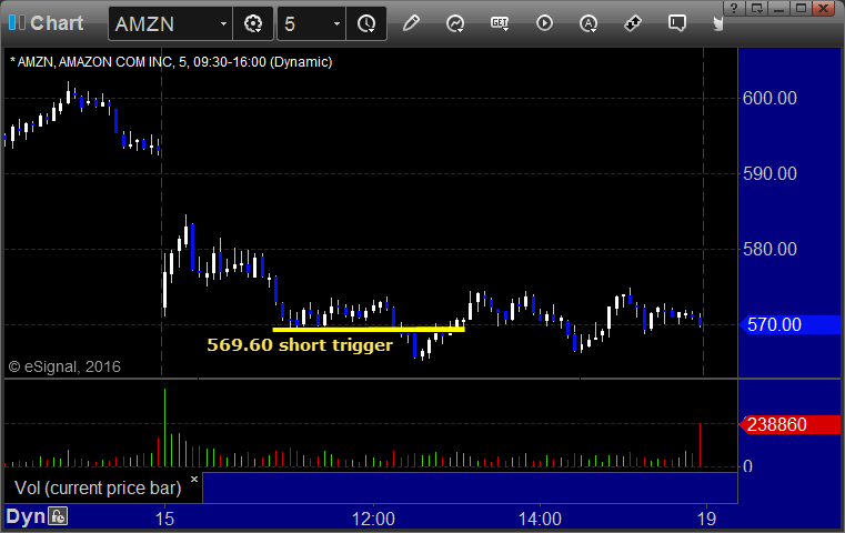 His AMZN triggered short (with market support) and worked: