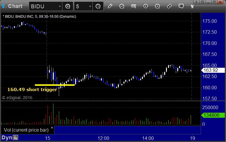 His BIDU triggered short (with market support) and worked: