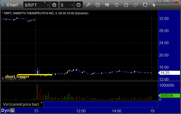 From the Messenger/Tradesight_st Twitter Feed, Rich's SRPT triggered short (without market support) and worked: