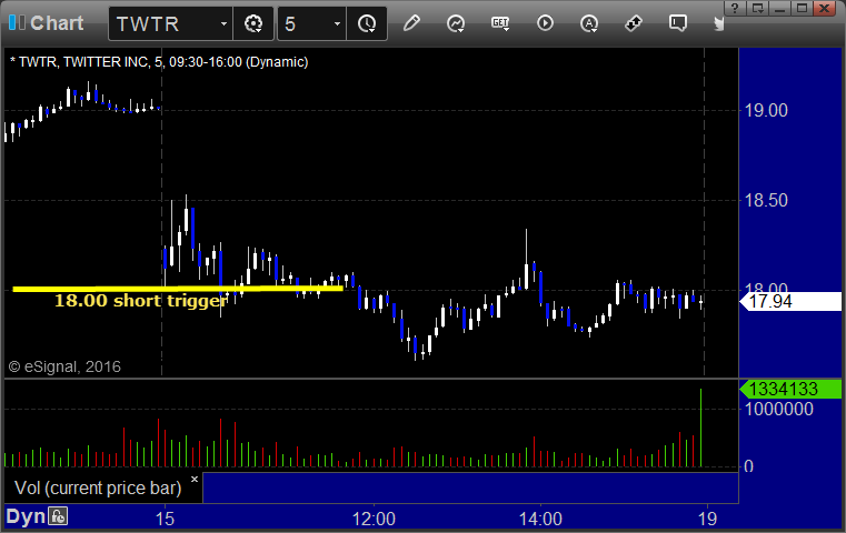 Mark's TWTR triggered short (with market support) and worked enough for a partial: