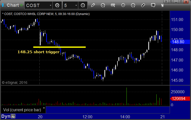 COST triggered short (with market support) and worked: