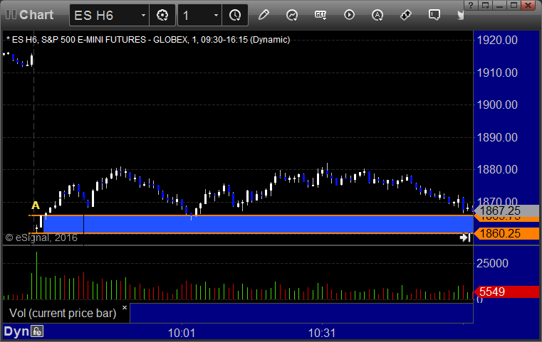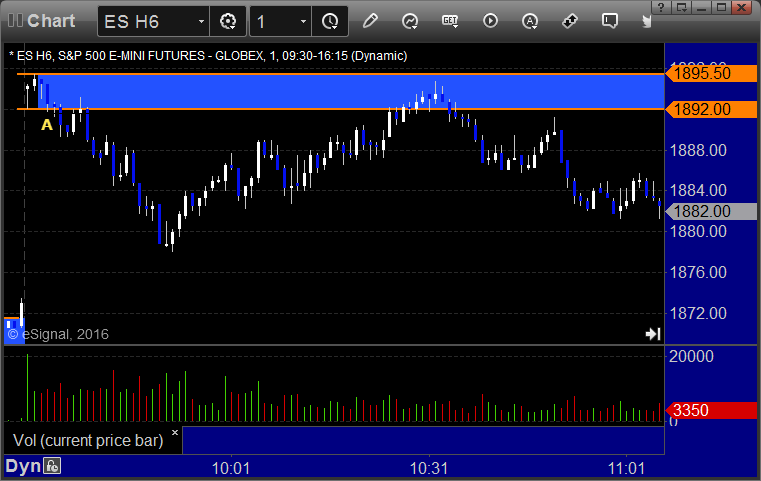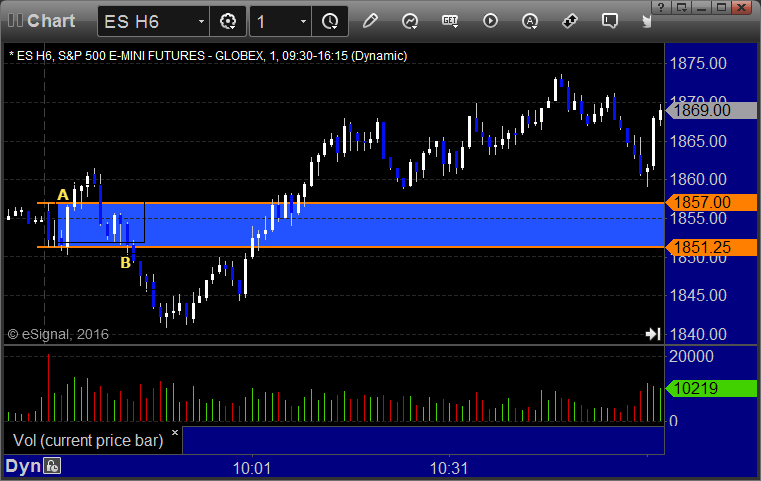 ES Opening Range Play triggered long at A and stopped, triggered short at B and went enough for a partial and nothing more: