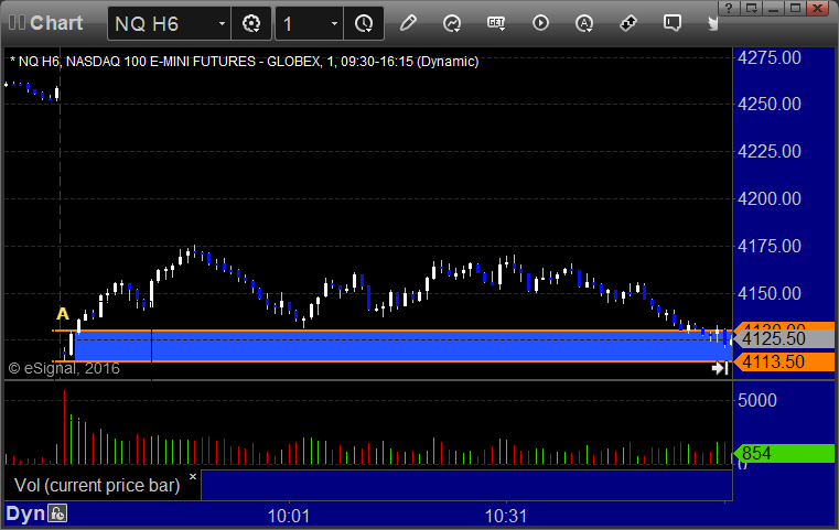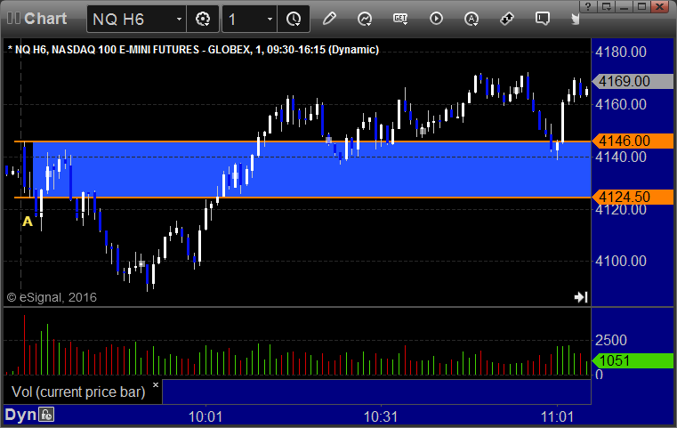 NQ Opening Range Play triggered long too far beyond the boundary under our rules to take, and same with the short after: