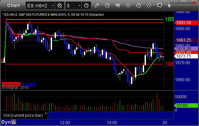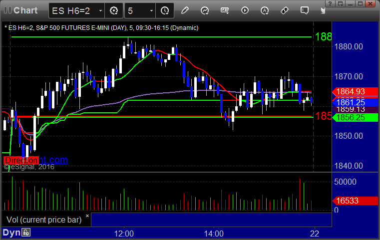As usual, let's start by taking a look at the ES and NQ with our market directional lines, VWAP, and Comber on the 5-minute chart from today's session:
