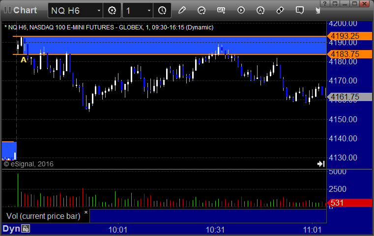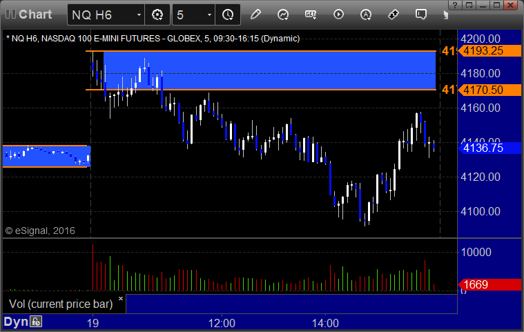 Just a reminder that we use half points for ticks on the NQ and not the quarter point measurement that the exchanges switched to in recent years. This allows us to use 6 ticks as a key target as we do on the other contracts. It also keeps the value of a tick at $10, closer to the value of a tick on the other contracts.