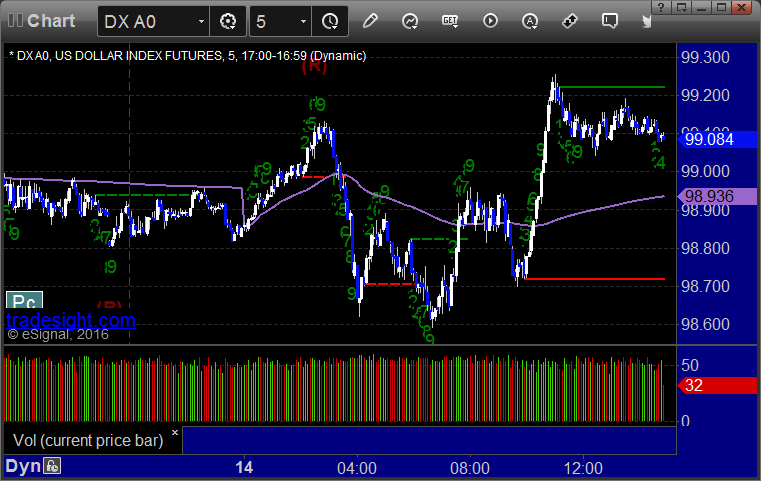 Here's a look at the US Dollar Index intraday with our market directional lines: