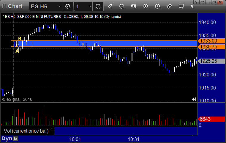 ES Opening Range Play triggered short at A and didn't work, triggered long at B and did: