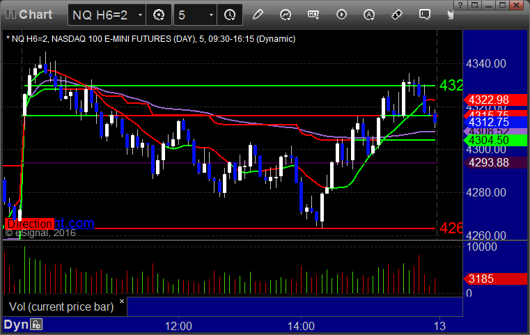 As usual, let's start by taking a look at the ES and NQ with our market directional lines, VWAP, and Comber on the 5-minute chart from today's session: