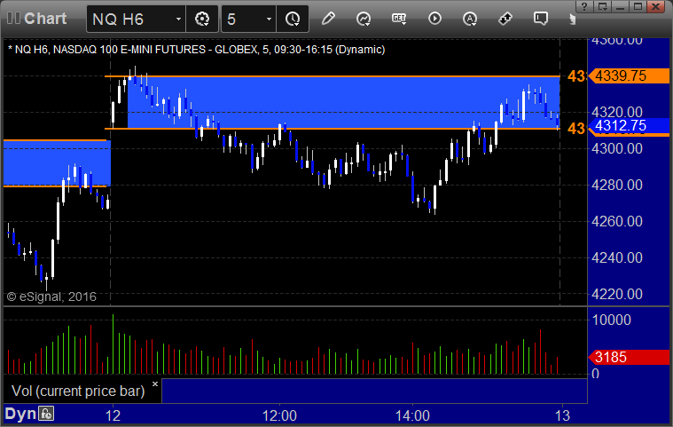The markets gapped up and initially went higher for about 20 minutes, then rolled and filled the gaps, crossed the Value Area on the ES and then came back up late in the day to the open on 1.9 billion NASDAQ shares. Opening range plays worked, although the ES triggered short first and stopped, but both long worked. We also had a separate ES call that worked.