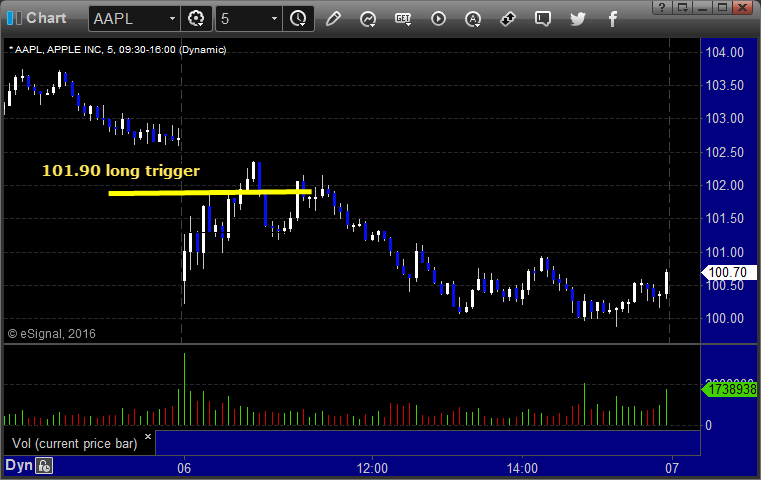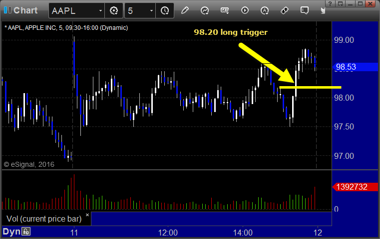 His AAPL triggered long (with market support) and worked enough for a partial: