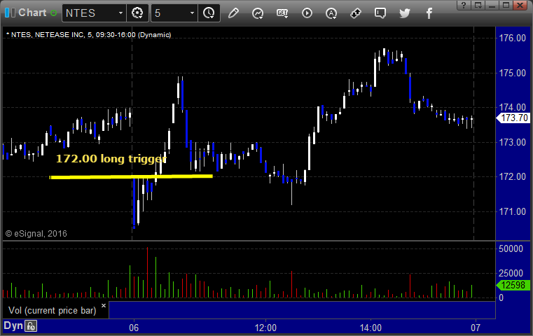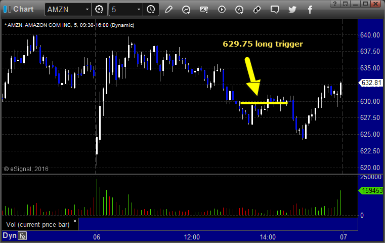 His AMZN triggered long (with market support) and worked enough for a partial:
