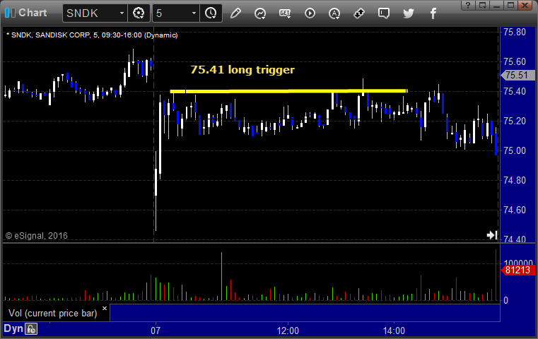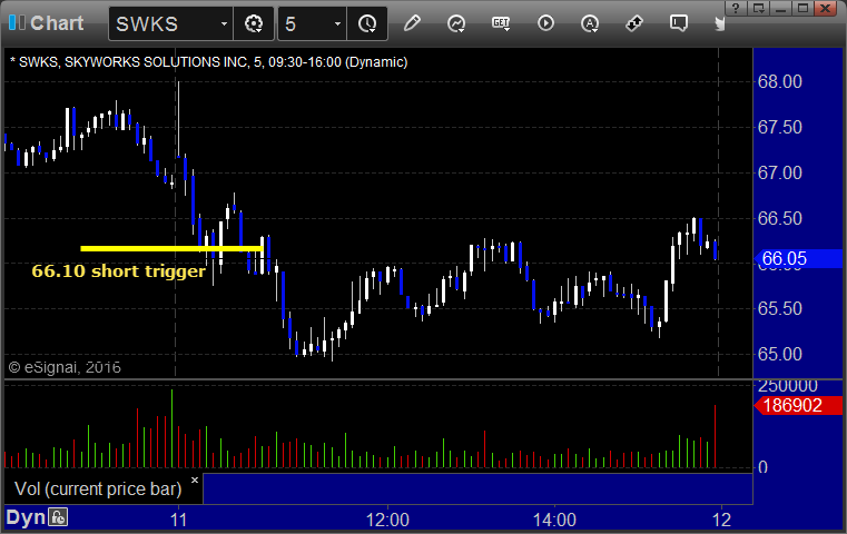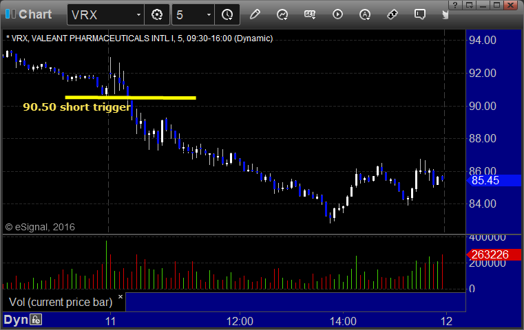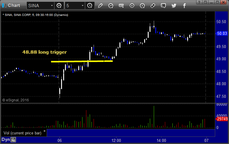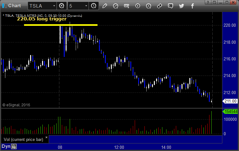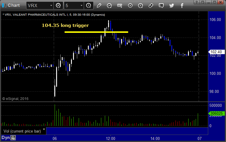 With each stock's recap, we will include a (with market support) or (without market support) tag, designating whether the trade triggered with or without market directional support at the time. Anything in the first five minutes will be considered WITHOUT market support because market direction cannot be determined that early. ETF calls do not require market support, and are thus either winners or losers.