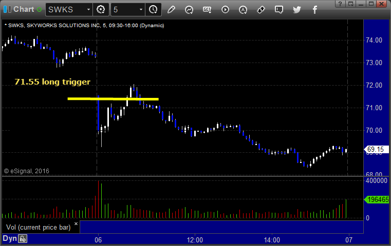 From the report, ONCE and NLNK gapped under the triggers, no plays.
