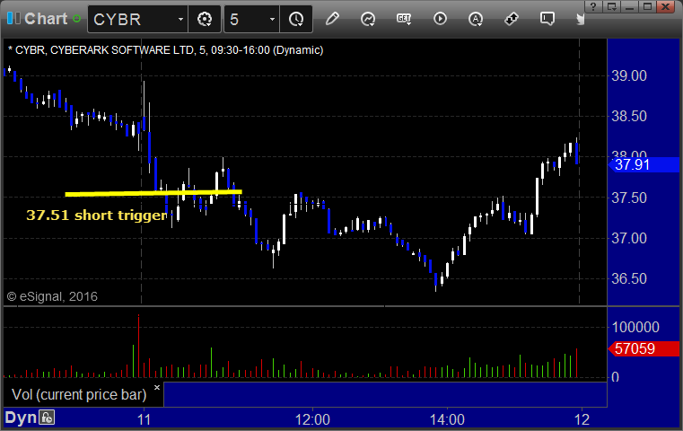 From the report, CYBR triggered short (with market support) and worked enough for a partial: