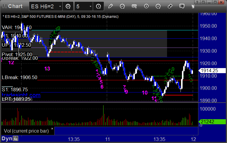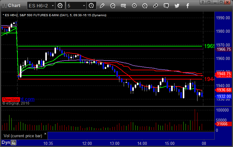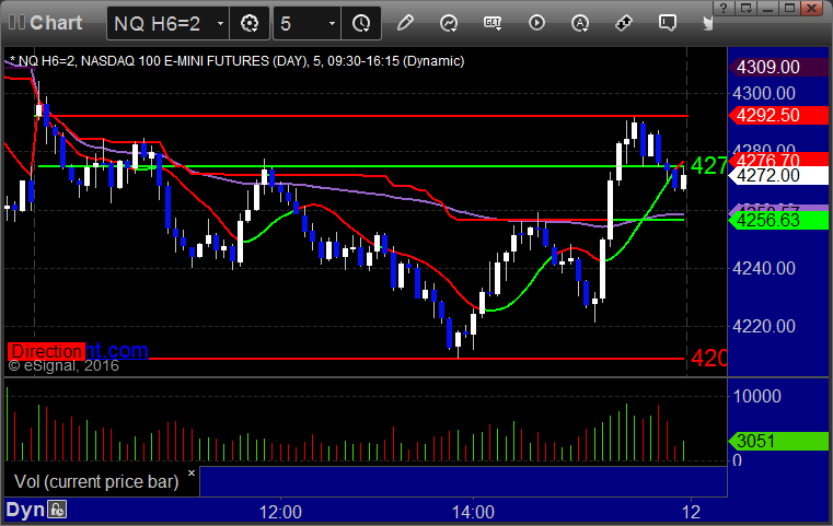 As usual, let's start by taking a look at the ES and NQ with our market directional lines, VWAP, and Comber on the 5-minute chart from today's session: