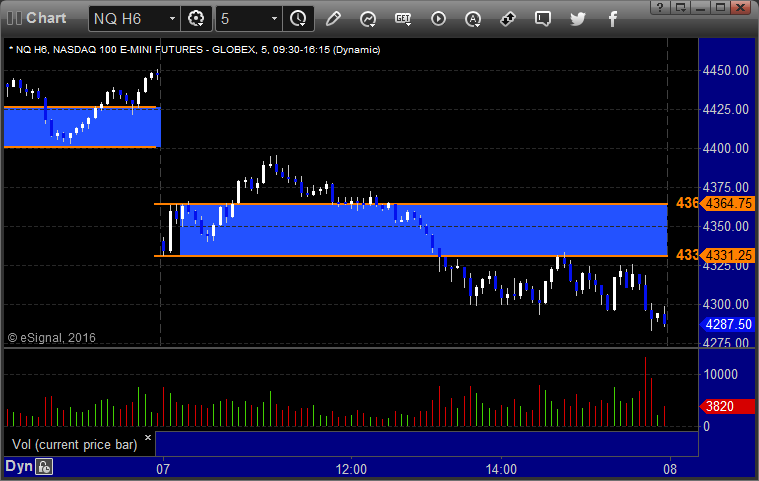 The markets gapped up a little, filled early, and spent lunch time around even. We swept lower after lunch, then popped back up to the UBreak on the ES in the last hour before settling almost even for the day on 2.2 billion NASDAQ shares. The Opening Range plays swept one way first before working the other.