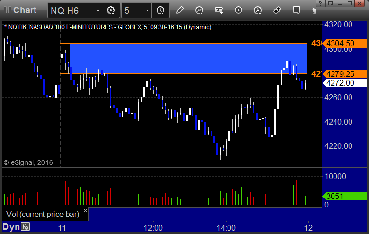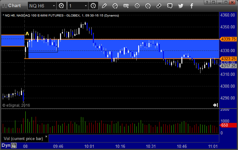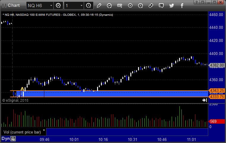 NQ Opening Range Play triggered long at A and made 15 ticks: