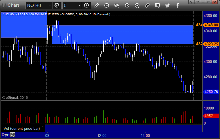 The markets gapped up and sold off for the session on 2 billion NASDAQ shares, closing at the low of the week. We are now officially counting the Opening Range plays based on the basic system that we teach in the course for entry and exit.