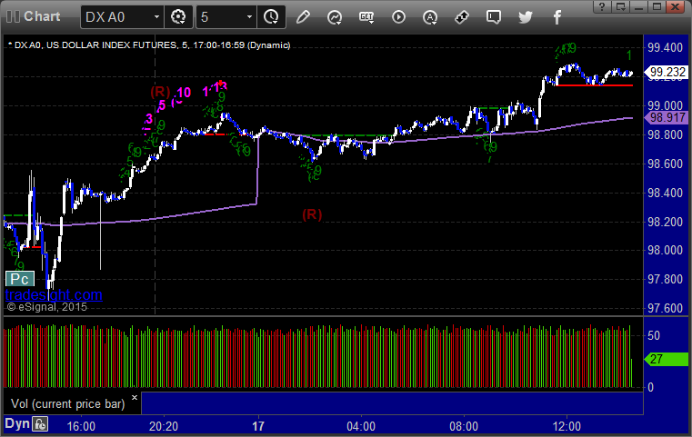 Here's a look at the US Dollar Index intraday with our market directional lines: