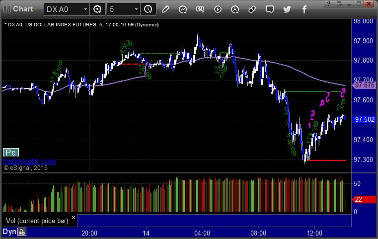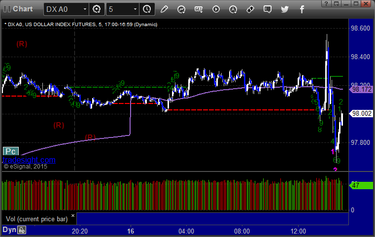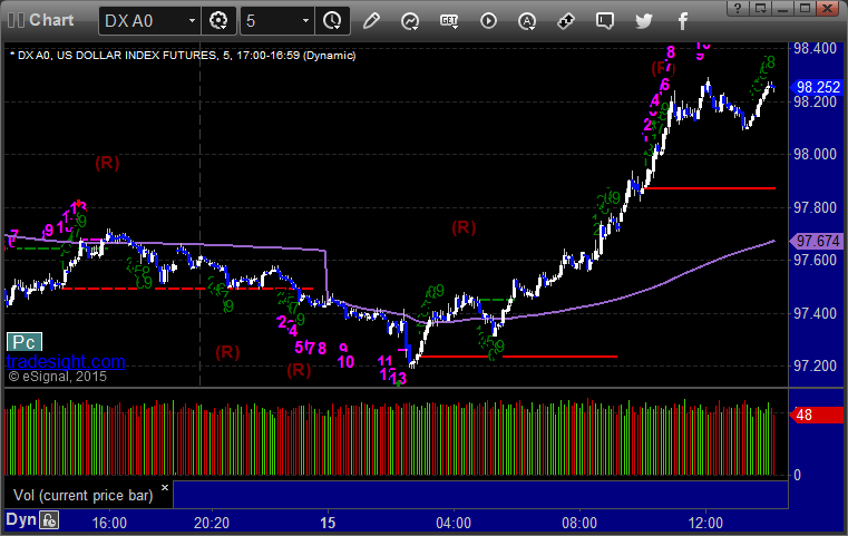 Here's a look at the US Dollar Index intraday with our market directional lines: