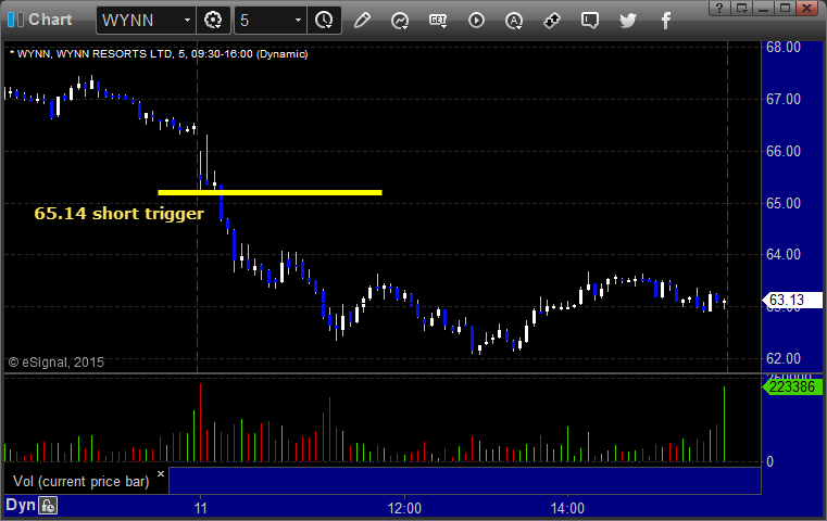 His WYNN triggered short (with market support) and worked: